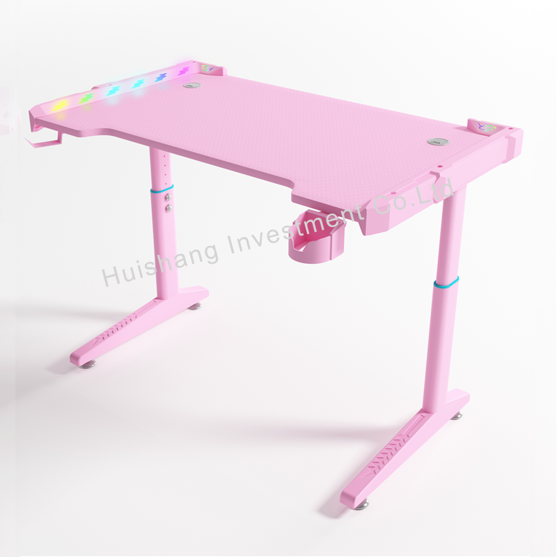 Gaming Desk with Led Lights, Ergonomic Home Office Desk, Gamer Workstation Racing Table, with Cup Holder& Headphone Hook, Black Carbon Fiber Table Top
